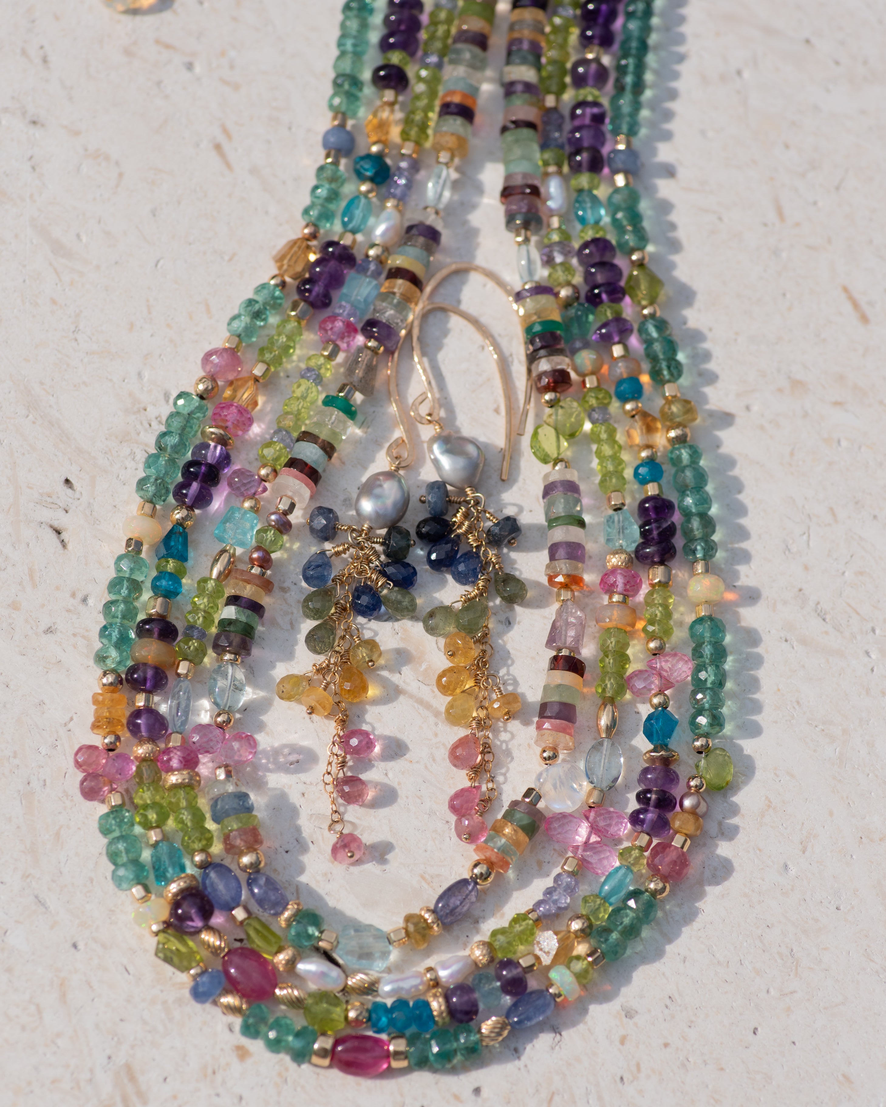 Our collections are considered small batch. To provide the best quality, materials, and designs, I work best with creating small jewelry collections that are typically released every two months. Each collection is created with the utmost attention to detail and craftsmanship. We source the best gemstones along with quality gold filled materials to create demi fine jewelry that will last for years to come. Collections are designed with an array of pieces including necklaces, bracelets, and earrings that all compliment each other. Once a collection has sold, it is retired. This allows each piece to be considered a limited series, and keeps pushing my creativity to new limits. A variety of pieces we consider jewelry staples are stocked online year round.
