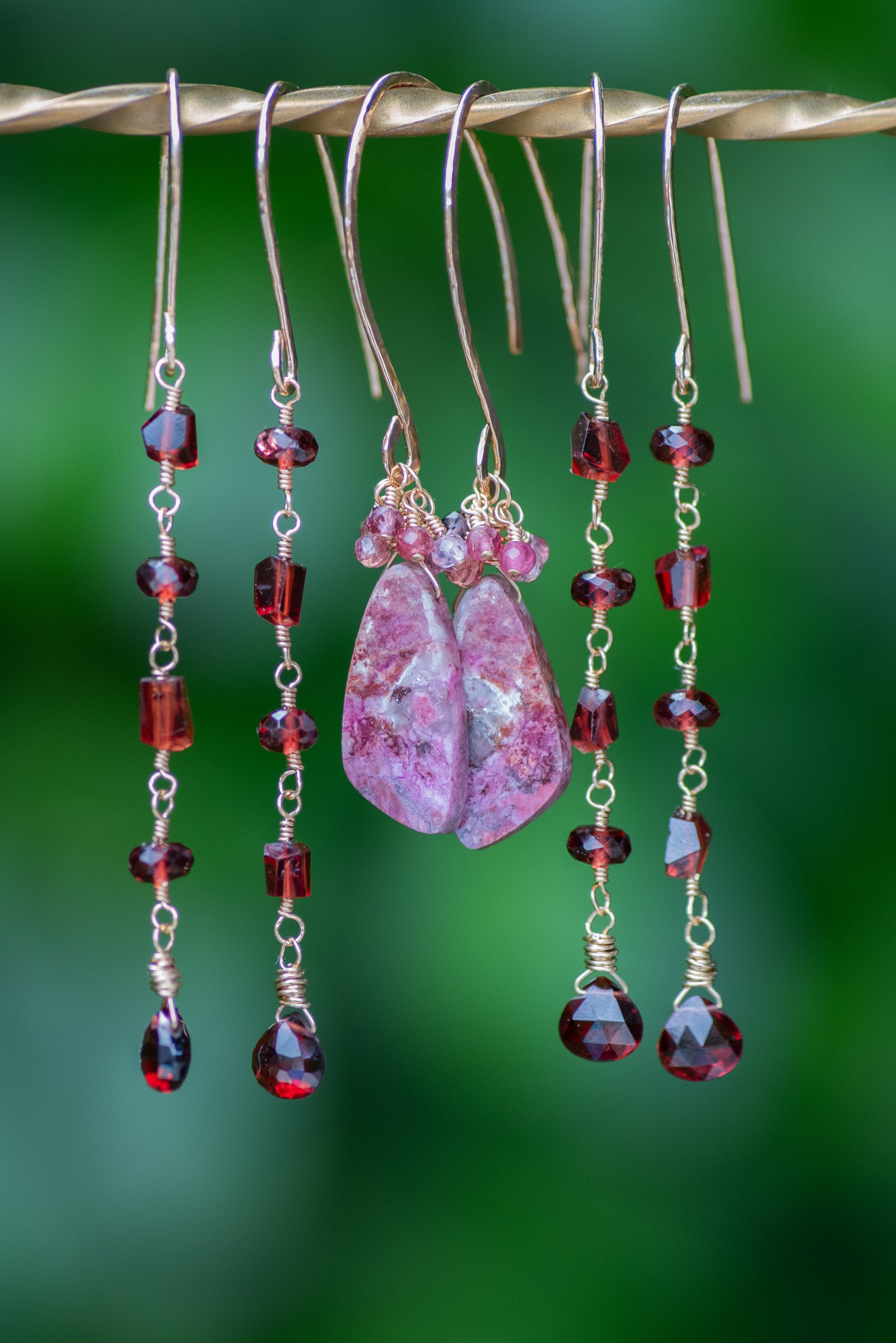 These simple Garnet Gemstone Earrings are all about the gems! The simplicity of these earrings is because the gems are spectacular and shine on their own. These feature AAA & AAAA quality garnet. The color is a rich, deep merlot. These are lightweight and hang from our handcrafted ear wires.